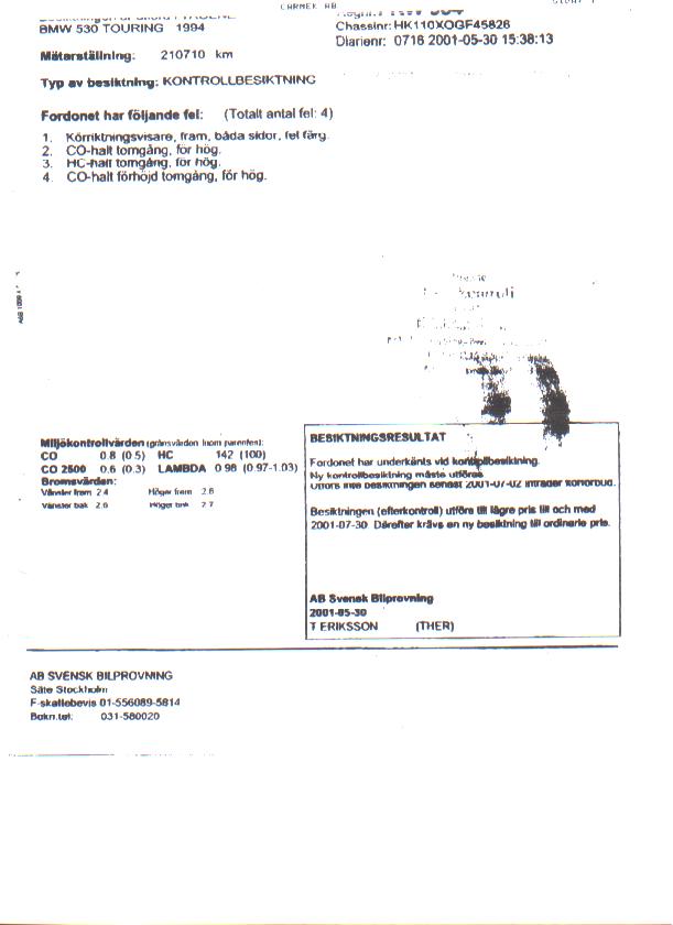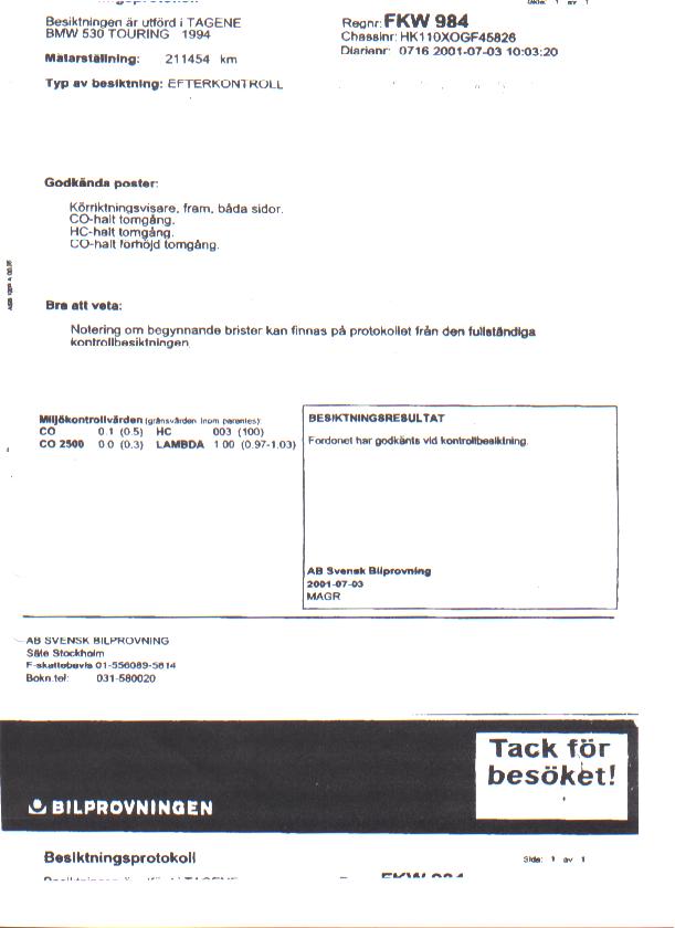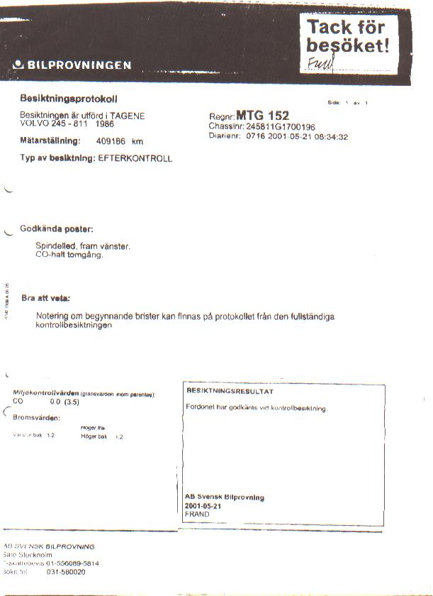Inskickade besiktningsprotokoll