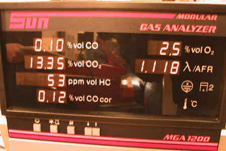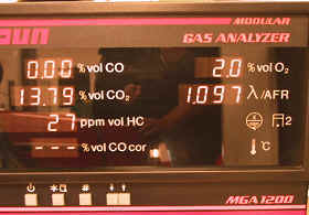 | Resultat. HC och CO ökar markant inledningsvis efter montage av Halostiften. Detta sker eftersom Halo har en bättre förbränning och ett större förbränningsområde. Efter en tid ca. 20-40 min sjunker CO- och HC-värdena med nästan 50%. Ett enkelt test som bevisar att Halo minskar HC och CO markant. En